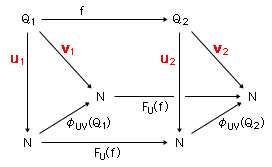 比例関係の数計算で単位系のとり直しを併せて処理しているものは,つぎの図式の上にのっていることになる: